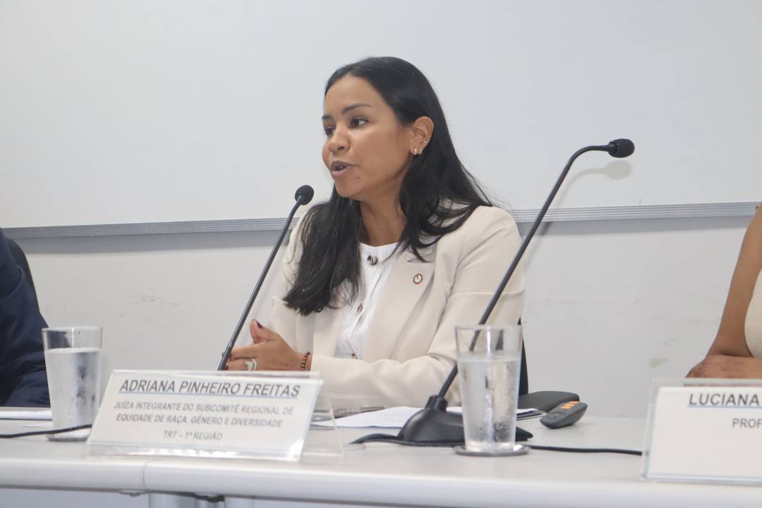 Ainda na conferência de abertura, a juíza Adriana Pinheiro Freitas, 2ª diretora de Direitos Humanos e Cidadania da AMATRA1, avaliou os dados de representatividade do TRT-1 e enfatizou a relevância da indicação da desembargadora Márcia Regina Leal Campos ao Tribunal Superior do Trabalho. Segundo ela, a proporção de apenas 13% de magistrados(as) autodeclarados(as) pretos ou pardos no TRT-1 evidencia a assimetria estrutural no acesso a cargos.
