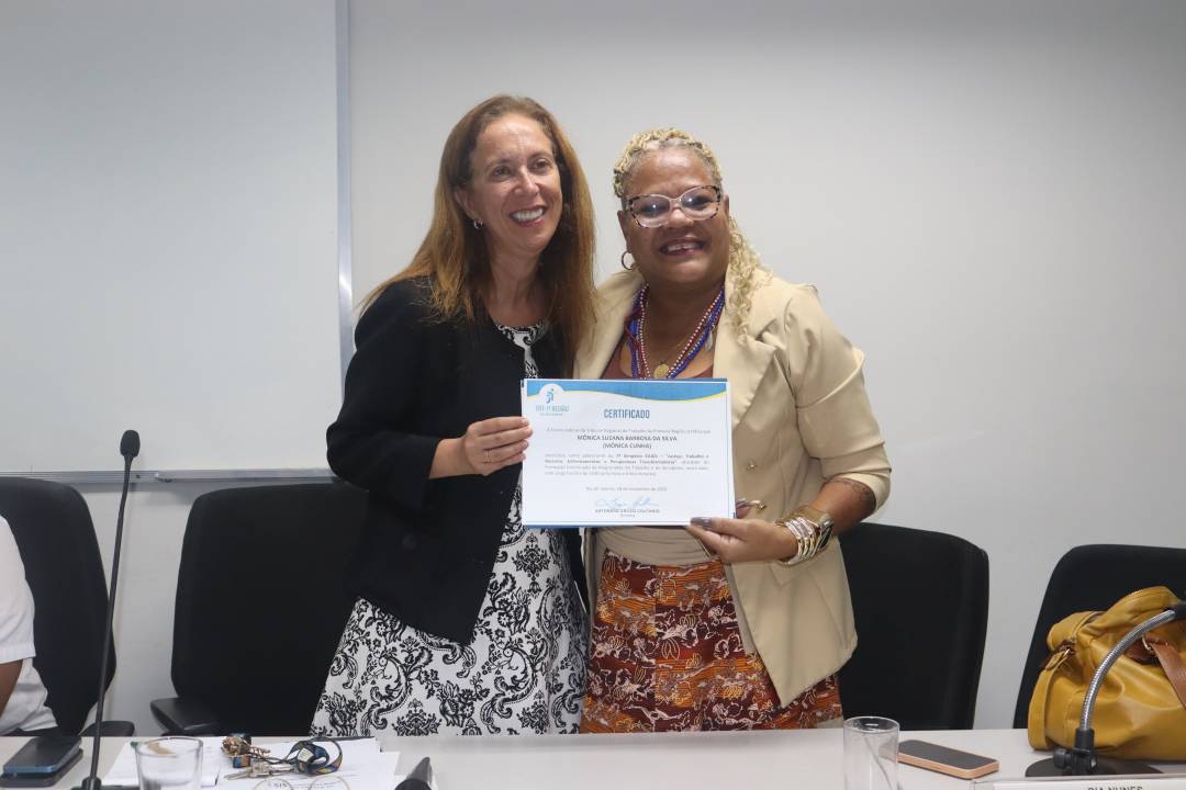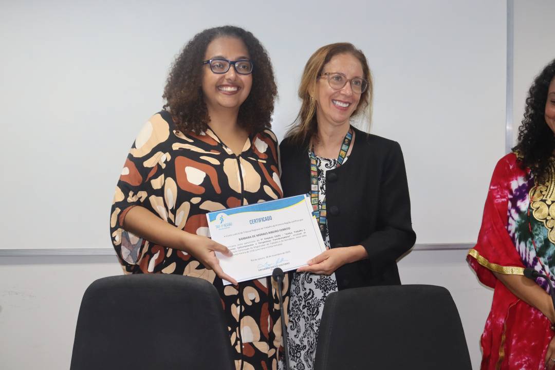 No último painel, dedicado ao papel dos atores sociais no combate ao racismo, a desembargadora Sayonara Grillo, diretora da Ejud1, conduziu a mesa, ressaltando que os avanços se tornam possíveis quando o Judiciário se dispõe a aprender com as experiências concretas da classe trabalhadora e com as vozes que historicamente sustentaram a pauta. Para ela, “não há, efetivamente, condições de a Justiça do Trabalho cumprir o seu papel sem ter uma capacidade de escuta ativa, e uma escuta que nos transforme”.