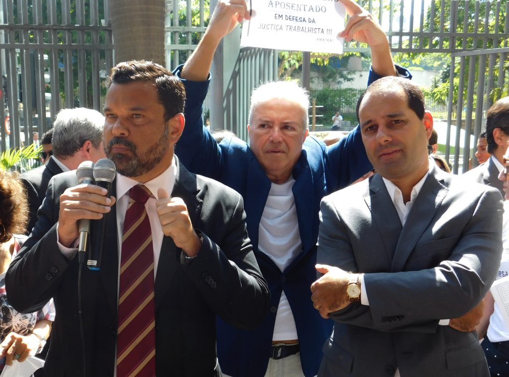 [caption id="attachment_24847" align="aligncenter" width="525"] A AMATRA1 marcou presença nos atos em Defesa da Justiça do Trabalho no início deste ano[/caption]