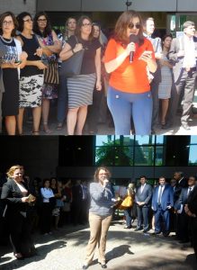 “Este já é o terceiro ato em defesa da Justiça do Trabalho que realizamos aqui, no Fórum da Lavradio e, por um lado, é triste que tenhamos que defendê-la. Os juízes não vão descumprir a Constituição. Essa ideia vem sendo difundida como meio de nos intimidar, dificultando o acesso à justiça e trazendo insegurança aos advogados sobre as decisões que tomaremos. Nós vamos interpretar a lei e contamos com todos os operadores do direito nesta caminhada em defesa da Justiça do Trabalho”, argumentou a presidente da Amatra1, Cléa Couto.