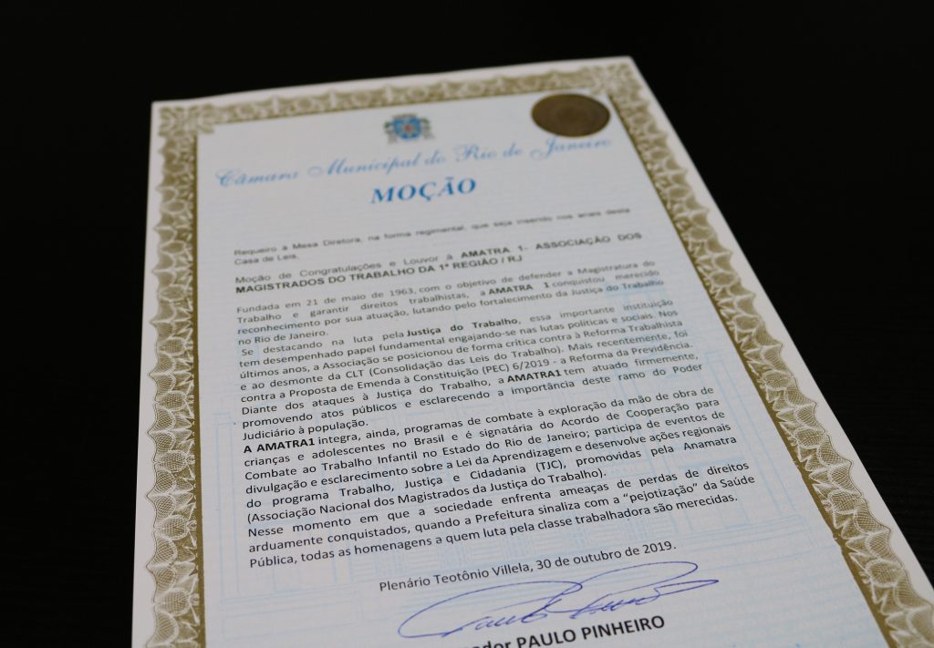 Para o presidente da associação, Ronaldo Callado, a homenagem é um “reconhecimento da importância da AMATRA1 como entidade representativa de uma categoria, mas, mais do que isso, como entidade preocupada com questões que envolvem a sociedade como um todo, especialmente a de valorização e defesa do Direito e da Justiça do Trabalho.