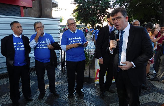 O procurador-chefe do MPT no Rio de Janeiro, Fábio Goulart Villela, ressaltou que a sociedade precisa estar sempre atenta para tentativas de reduzir direitos sociais e trabalhistas. “Viemos aqui defender mais do que a Justiça do Trabalho. Viemos defender os direitos sociais arduamente conquistados, mas que podem desaparecer rapidamente. Todos os órgãos que defendem os direitos sociais precisam ser protegidos.”