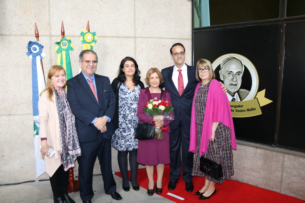 Família do desembargador Christovão Piragibe Tostes Malta participou da cerimônia no Fórum[/caption]A corregedora Mery Bucker Caminha falou, em seu discurso, sobre sua amizade com Tostes Malta, iniciada antes do ingresso na magistratura. “Para mim, ele sempre vai ser o doutor Christovão. Fui convidada a trabalhar em seu escritório, onde aprendi muito. Ele foi um grande amigo, um verdadeiro pai. Doutor Christovão era sensível e tinha muito amor pela Justiça do Trabalho. Serei eternamente grata a ele”, disse.