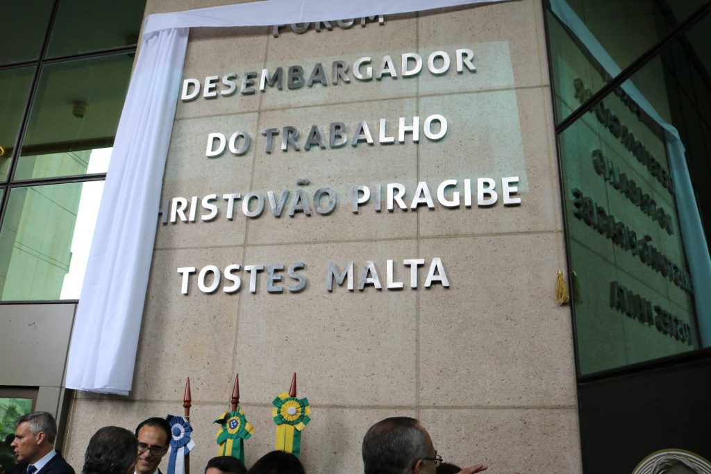 Fórum Trabalhista da Lavradio recebeu o nome de 'Fórum Desembargador do Trabalho Christovão Piragibe Tostes Malta'[/caption]O advogado Rodrigo, filho de Tostes Malta, afirmou ter sido surpreendido com o filme contendo vídeos e fotos da trajetória profissional do pai. “Fiquei muito surpreso por terem conseguido resgatar o vídeo em que ele diz que não gostaria de ser esquecido. Agora, certamente ele não vai ser esquecido nunca”, disse.