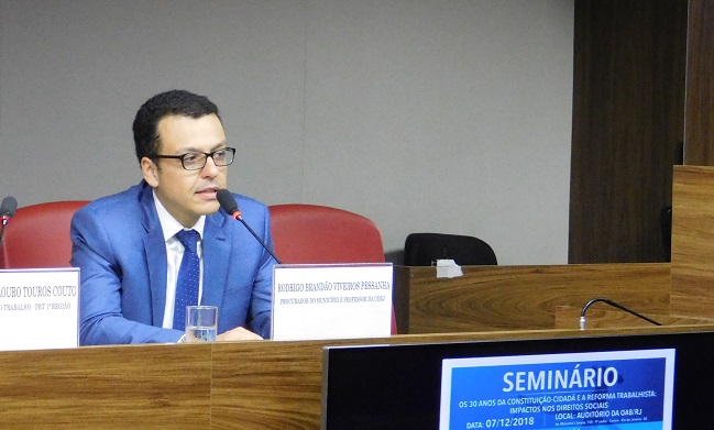 O ministro do TST (Tribunal Superior do Trabalho) Cláudio Mascarenhas Brandão criticou uma suposta fusão entre as Justiças Federal e do Trabalho. Ele abriu o seminário "Os 30 Anos da Constituição Cidadã e Reforma Trabalhista: Impactos nos Direitos Sociais", promovido pela AMATRA1, a OAB-RJ e o MPT-RJ, nesta sexta-feira (7). Na avaliação do ministro, a proposta seria um retrocesso para o direitos sociais e para o Direito do Trabalho.