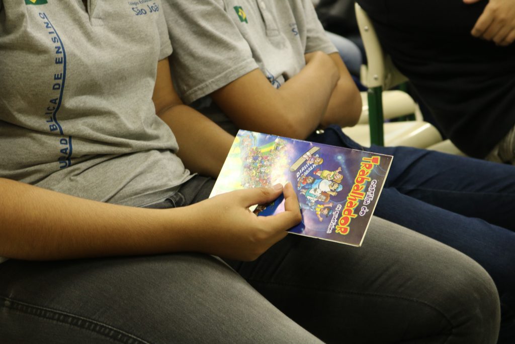 A cartilha da Anamatra sobre Direito do Trabalho é distribuída nos encontros[/caption]“É muito lindo vê-los trabalhar e produzir, porque percebemos que eles conseguem verdadeiramente desenvolver habilidades fora de sala de aula”, afirmou Lídia Helena Duarte, professora de Geografia.