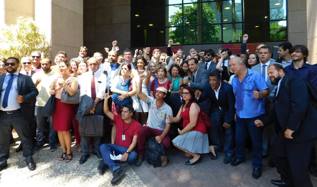 Cerca de 150 pessoas, entre magistrados, advogados, servidores e membros do MPT, participaram do ato em frente ao Fórum da Lavradio no dia 21 de janeiro. Nomes históricos da AMATRA1 compareceram à manifestação, como as ex-presidentes Anna Acker (1978-79 e 1985-86), Aurora Coentro (1997-99) e Eliete da Silva Telles (1993-95). Manifestações aconteceram também em outras 34 cidades.