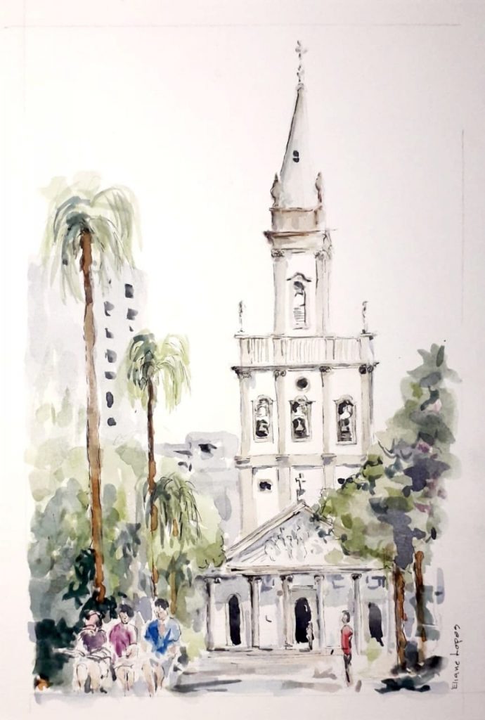 Igrejas e casarios fazem parte das pinturas em aquarelas[/caption]A artista iniciou seu conhecimentos técnicos com a pintura a óleo em aulas com o professor Arimatéia Sousa. Depois, estudou na oficina Diário Gráfico e no curso de Ilustração com Renato Alarcão, com quem também teve aulas de acrílica e aquarela. Eliane Lopes também se dedicou às técnicas com modelo vivo em curso com Lydio Bandeira de Mello, e, atualmente, segue estudando aquarela no Ateliê de Pintura da artista Chiara Bozzetti.