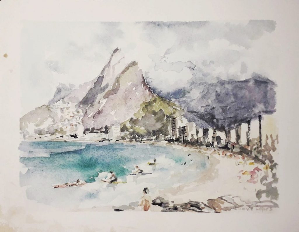 Paisagens naturais do Rio são retratadas nas aquarelas de Eliane Lopes[/caption]Apaixonada por pintura desde a infância, quando teve contato com a arte por meio de uma tia, Eliane contou que grande parte de seu trabalho é produzido no próprio local da paisagem. “A maior parte das obras é pintada ‘in loco’. A outra pequena parte é criada depois, olhando fotografias que tirei”, explicou.