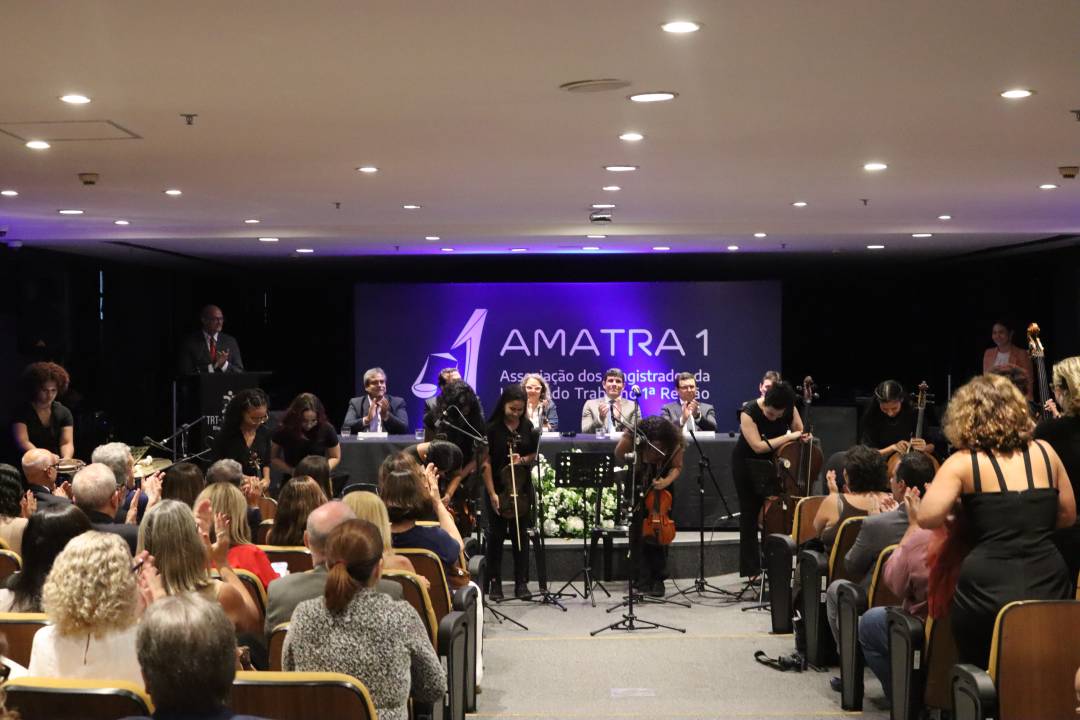 A AMATRA1 agradeceu a presença dos convidados no evento, encerrado com um coquetel no terraço do Tribunal, onde os integrantes da nova diretoria receberam os cumprimentos e votos de sucesso para o biênio após o término da solenidade.