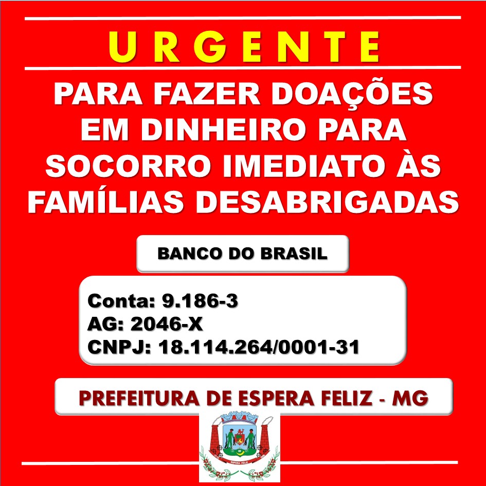 Os interessados em ajudar às vítimas de Espera Feliz podem doar qualquer valor para a conta 9.186-3, agência 2046-X, Banco do Brasil, CNPJ 18.144.264/0001-31. As informações foram divulgadas pelo perfil oficial da prefeitura no Facebook.