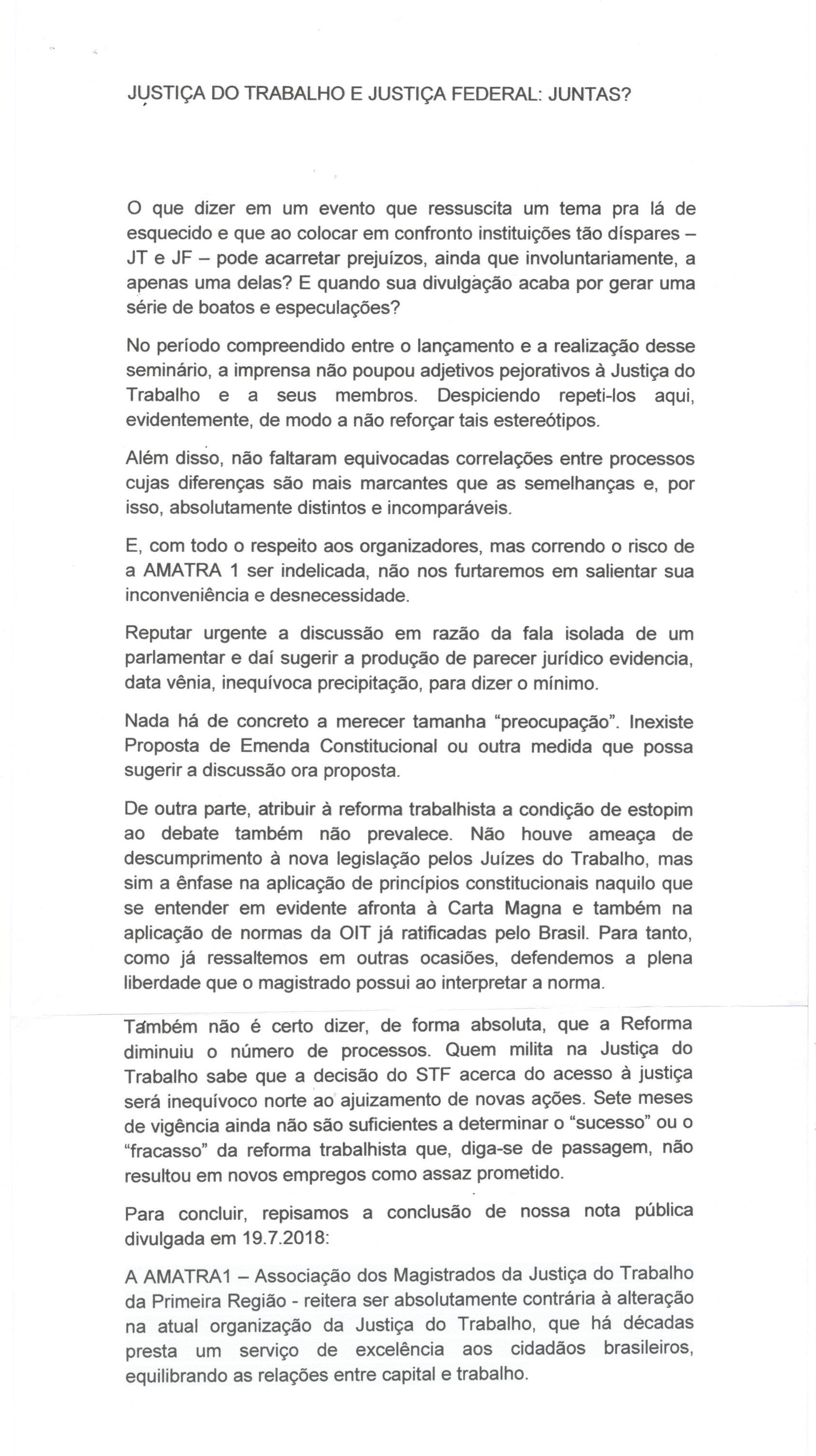 Leia também: NOTA: AMATRA1 repudia rumores de fusão da Justiça do Trabalho com a Justiça Federal