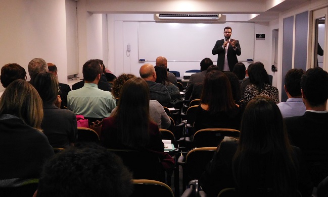 O magistrado Felipe Bernardes ministrou curso sobre honorários advocatícios e despesas processuais em geral, nesta quinta-feira (9), na sede da AMATRA1, no Rio. As dificuldades de acesso à Justiça do Trabalho após a aprovação da Reforma Trabalhista e as consequências para o Direito do Trabalho foram os temas debatidos durante o encontro, que contou com a participação de operadores do Direito de diversas áreas.