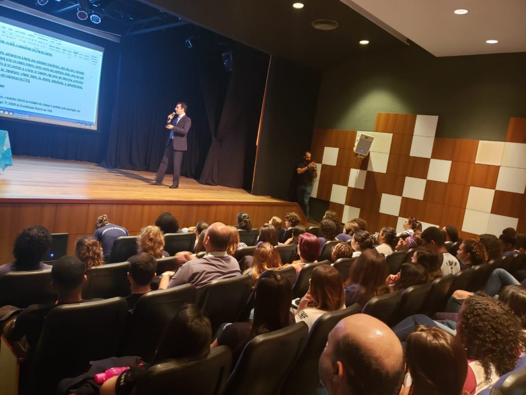O procurador Fernando Pinaud conversou com alunos do Instituto de Educação de Nova Friburgo (IENF)[/caption]As palestras tiveram como tema “O Trabalho Infantil, os Direitos do Adolescente Empregado e do Estagiário”. Além disso, foi abordado o tema central proposto pela Anamatra para o ano de 2019: “O Futuro do Trabalho Digno e a Importância da Justiça do Trabalho”.