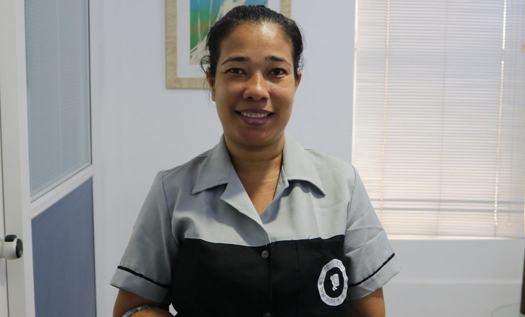 Ana Paula das Neves é contratada da empresa Limpeza Veloz e presta serviços à AMATRA1 há 3 meses. “É um lugar onde gosto de trabalhar, gosto de vir para cá. Sou muito bem tratada por todos”, afirmou. Mãe de quatro filhos, ela deixa os dois menores de idade na escola para trabalhar no Centro do Rio. “Quando chego, cuido de casa e fico um pouco com meu filho e minha filha. Mas, nos fins de semana, me dedico só a eles.”