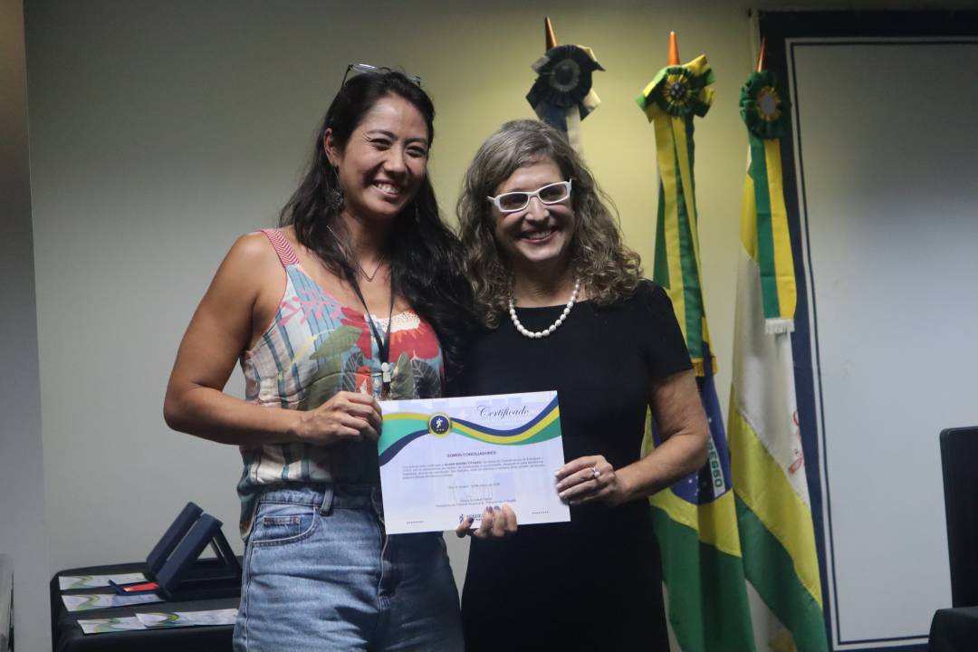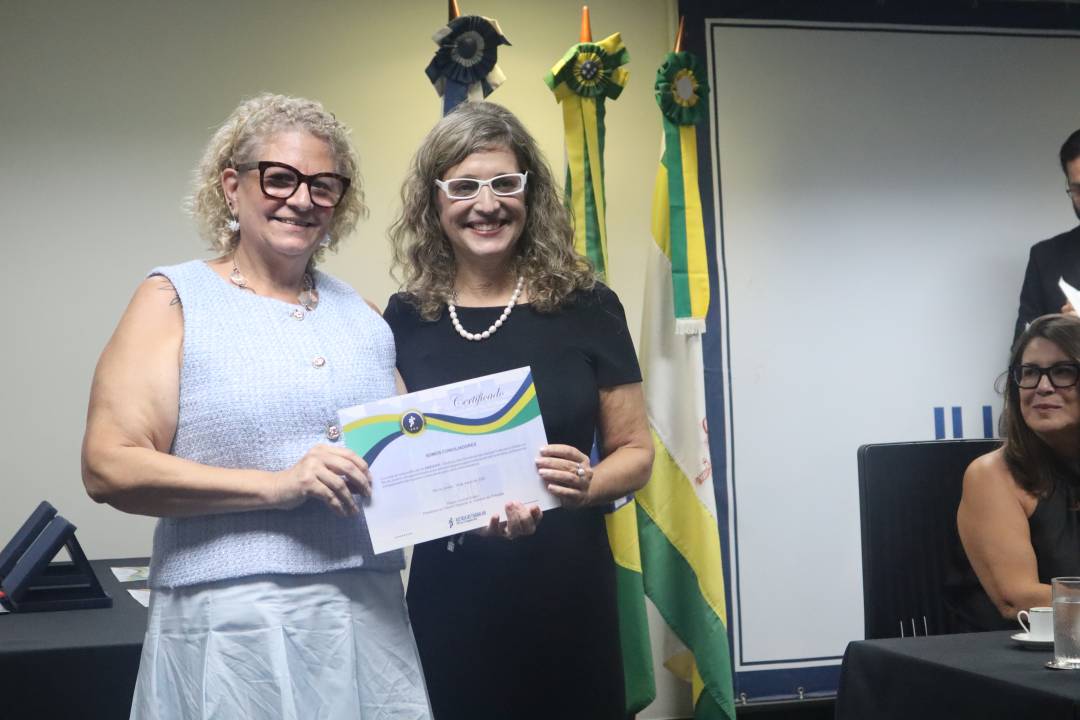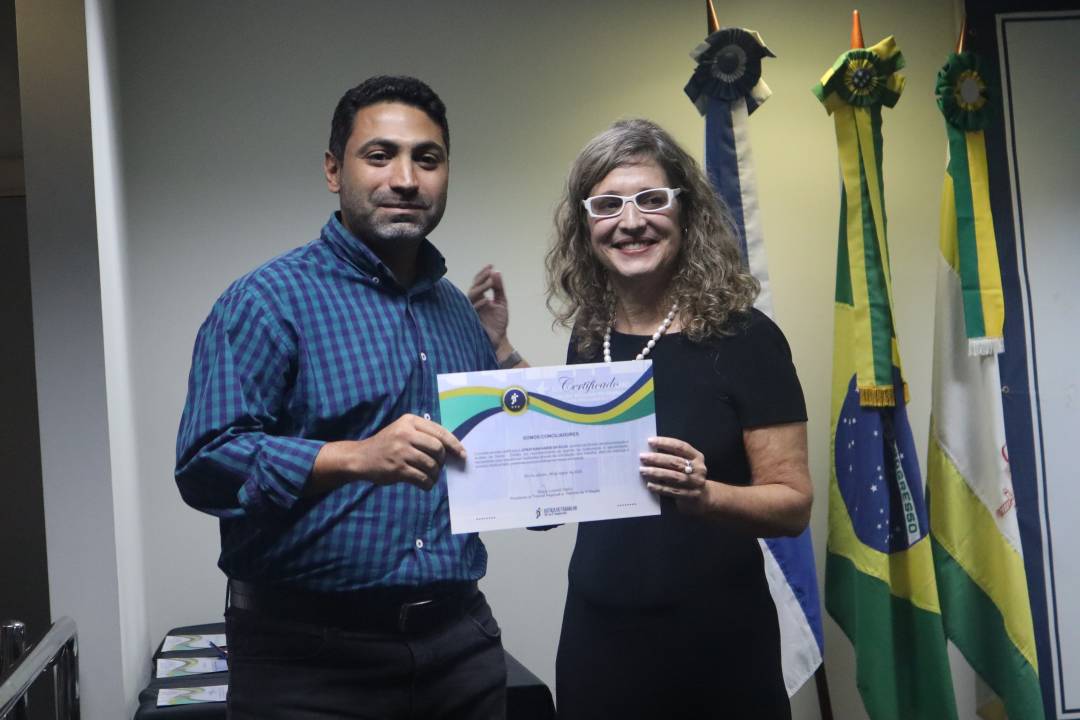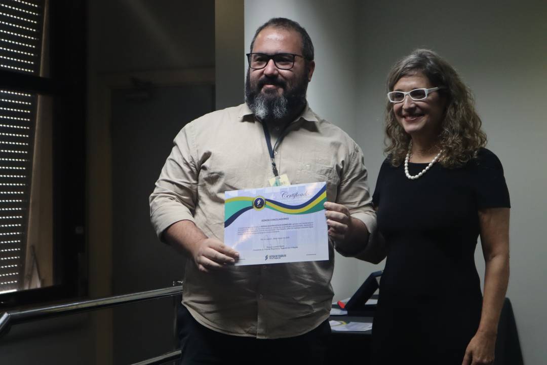 • Priscila Rodrigues da Silva, servidora do Lírio, também recebendo certificado em nome do coordenador do laboratório, desembargador Rogério Lucas Martins