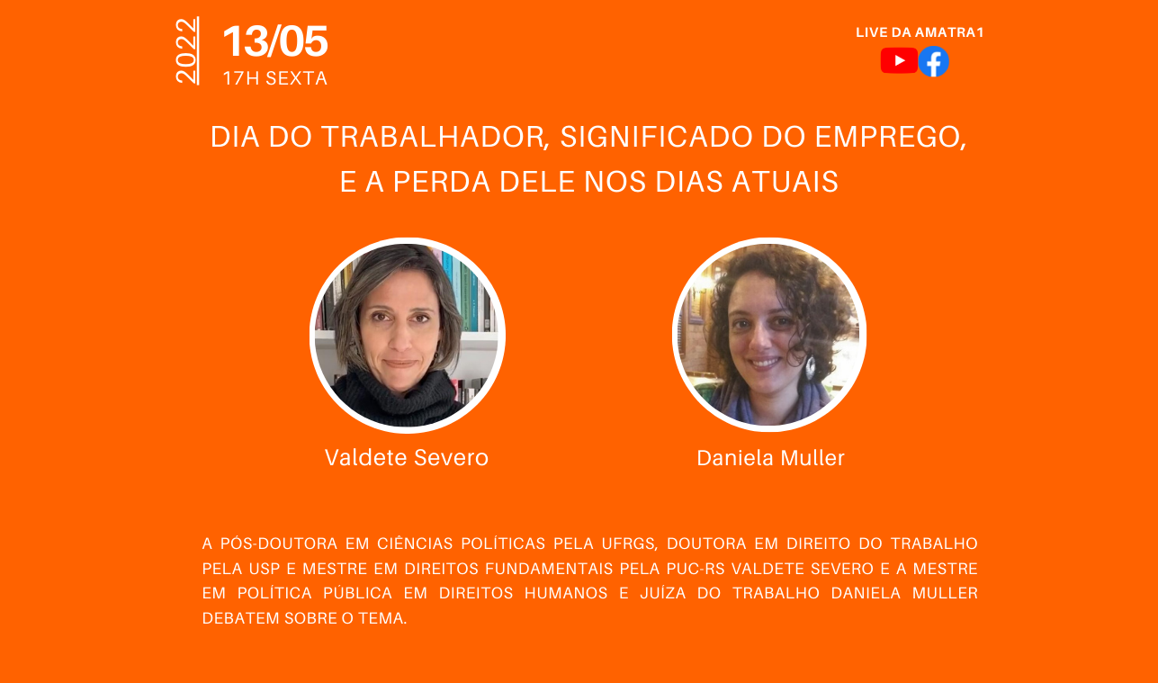 Trabalho como garantia de sobrevivência será tema de live da AMATRA1, na sexta