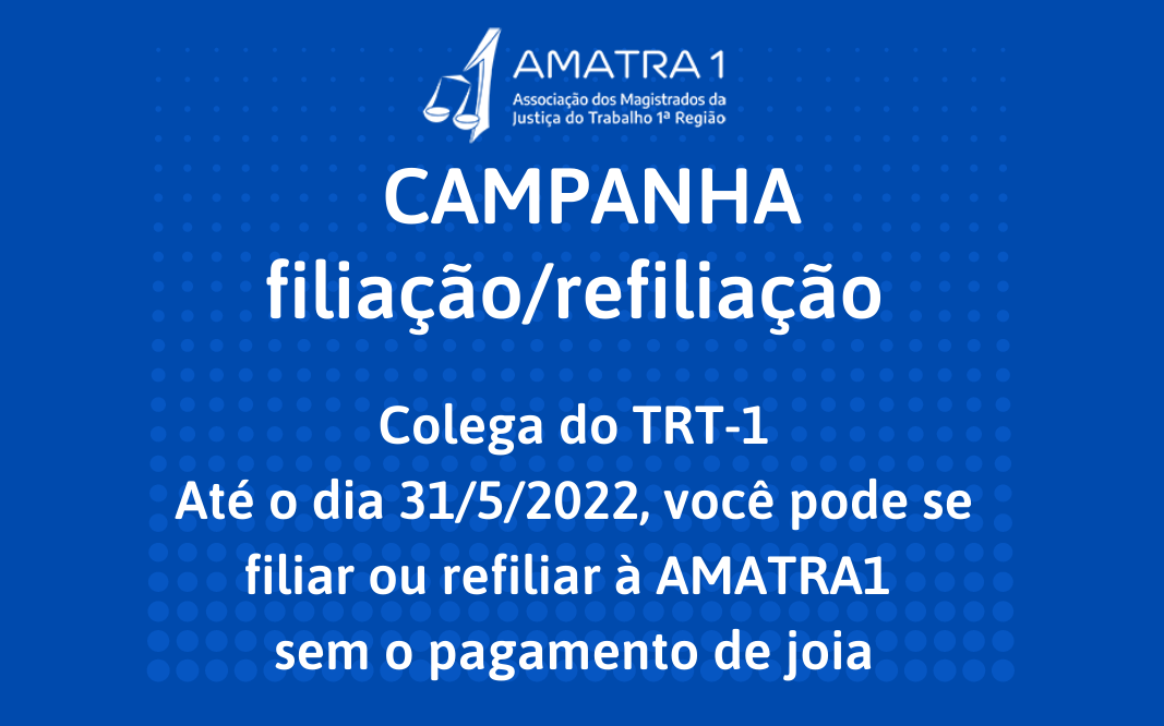Campanha de filiação e refiliação da AMATRA1 vai até 31 de maio